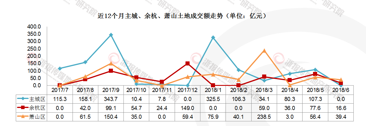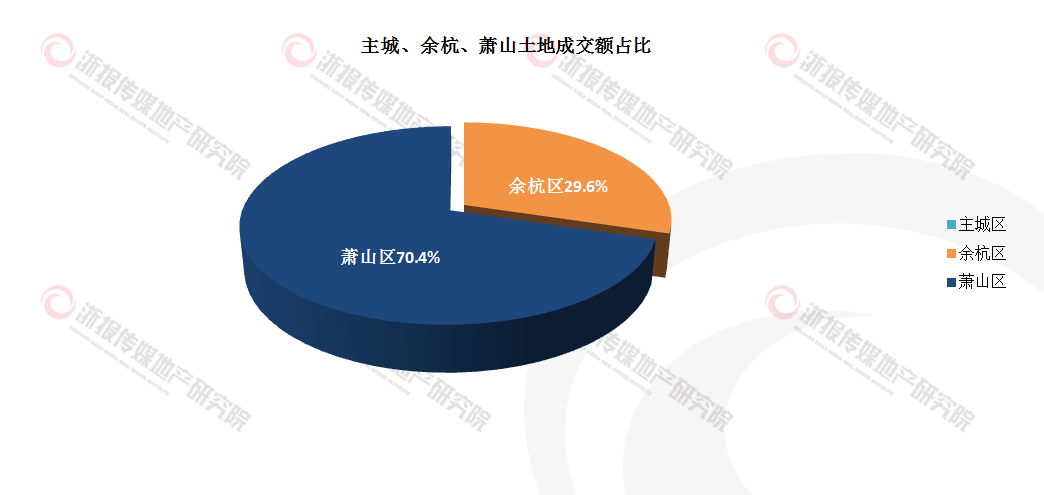 其间,主城区未有土地成交。萧山区成交四宗地块,总面积11.2公顷,可建面积27.5万方,成交金额39.4亿元,占总成交额的70.4%。余杭区成交一宗地块,总面积7.3公顷,可建面积16.7万方,成交金额16.6亿元,占总成交额的29.6%。